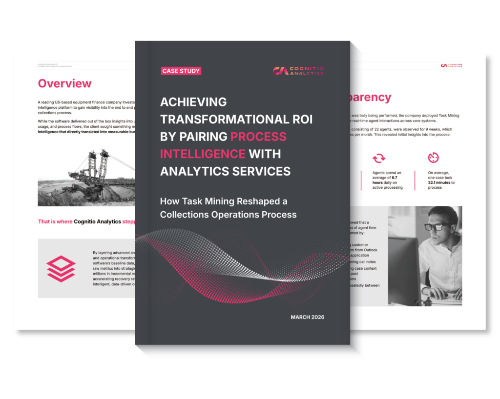 In this case study, learn how Cognitio Analytics helped a leading equipment finance company convert process data into real operational outcomes, transforming their collections operations using task mining, AI-driven automation, and predictive analytics.